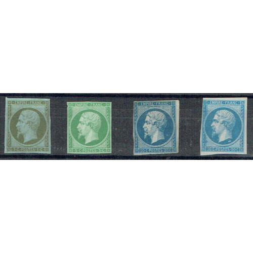 1853-60: Napoleon III unused with (no gum) no thins and mixed margins. (4)