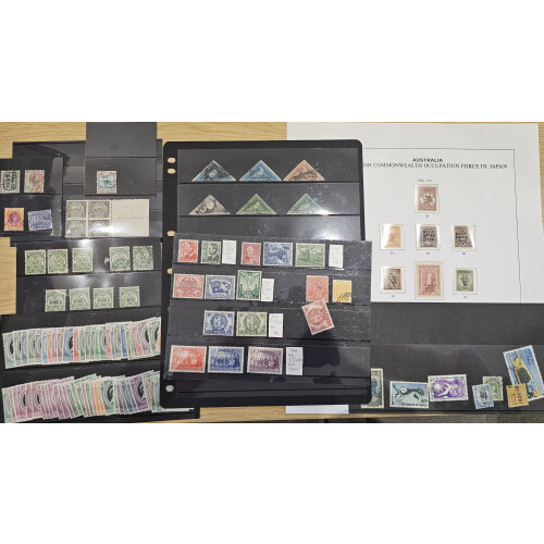 British Commonwealth: Jumbled assembly on album pages and stockpages with an interesting group all periods, mint and used, noted Australia GVI to £1 for different papers used, N.Z. 1936 to 3s mint, Papua & New Guinea collection, Sierra Leone GV to 10s (faults), S. Rhodesia 1927 set to 5s used, Ceylon GVI R5 mint, Nyasaland 1948 RSW set mint, B.C.O.F set mint (toned) gum, Cape of Good Hope triangles 4d blue (3 margins), 1d rose (3 margins), 6d lilac, 1s deep green (2 margins), etc.