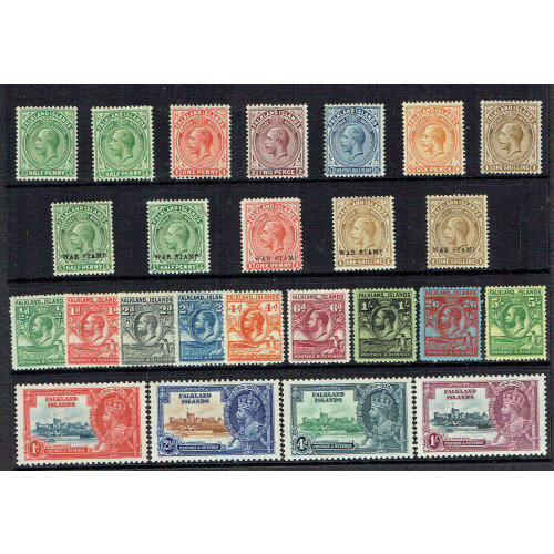 1912-1935 GV Mint assembly including 1912-20 basic set to 1s, War Stamp to 1s (2), 1929 Whale & Penguin basic set to 5s, 1935 Silver Jubilee set. (25).