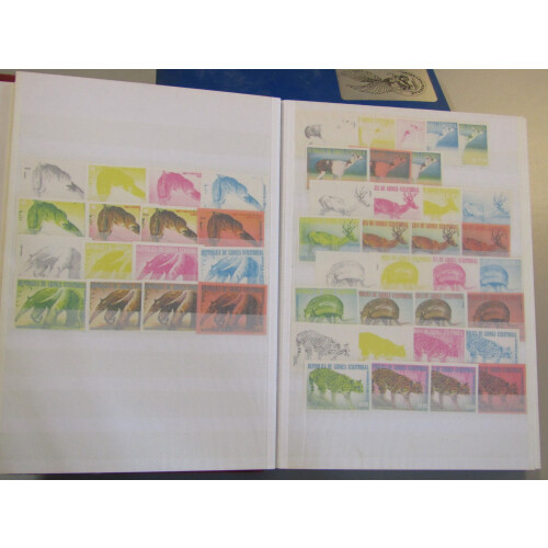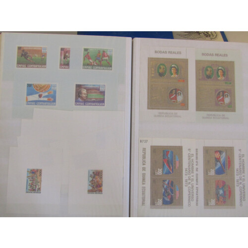 AFRICAN COLONIES - Post independent colonies mainly 1960s-70s unmounted mint collection in a large stockbook includes attractive ranges of Equatorial Guinea gold foil miniature sheets for 1969 Moon Landing (9), Copernicus (10), Munich 1974 (16), Munich 1972 Horse Jumping (16), 1972 Christmas (17), Upper Volta Football souvenir sheets imperf (16), Ivory Coast Football (5), Mauritania airs, Senegal airs, Central Africa, Togo imperf sheets to 1000f, Niger Football imperf M/S (10), Chad Epreuve De Luxe, plus many more, good range of imperf singles in sets or ranges, perf and imperf M/S etc, beautiful thematics lot with good retail on the internet. 600+ items