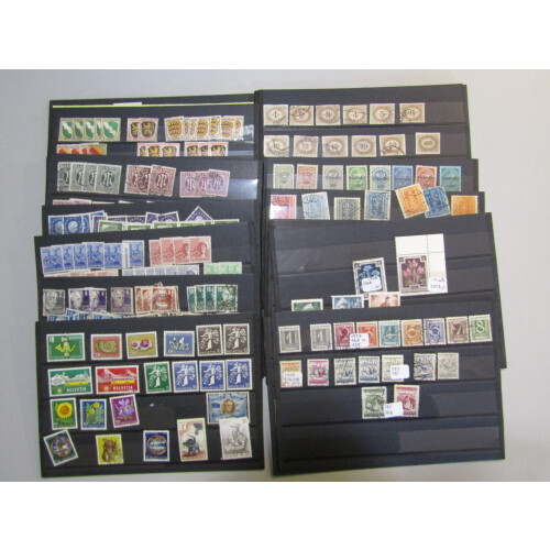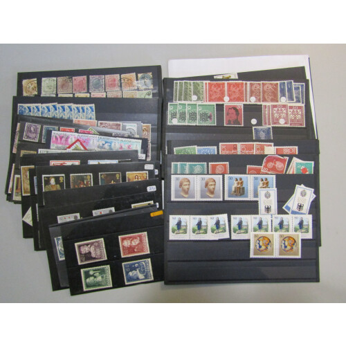 Large stockcards with a worldwide range of mint & used some better including Austria 1948 Costumes 1s red mint, Belgium charity sets mint, West Berlin, Netherlands, French colonies, United Nations, Switzerland incl. airs to 50c mint, large amount of mint German Zones, etc, 100s, Approx 130 cards.