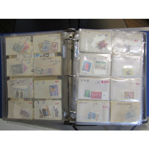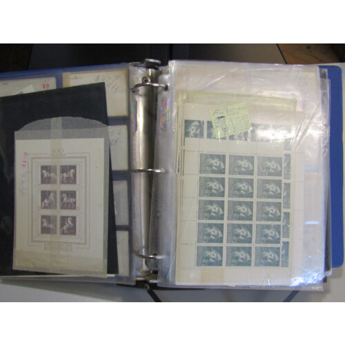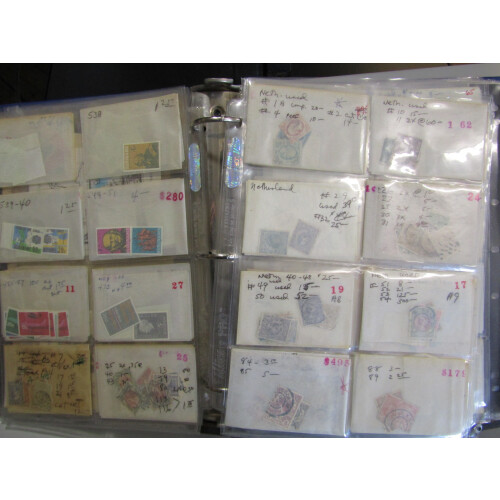 Binder with an eclectic mix of countries includes mint and used in packets for Switzerland, Austria, Luxembourg, Liechtenstein, Belgium incl 1914 Red Cross mint, Netherlands from imperfs, 1896-98 50c to 5g used (perf faults cat £980), interesting range of Cinderella poster stamps and revenues incl USA cigarette, St Pierre & Miquelon misperf, Thailand 1966 Asian Games set m, plus much more. 100s.