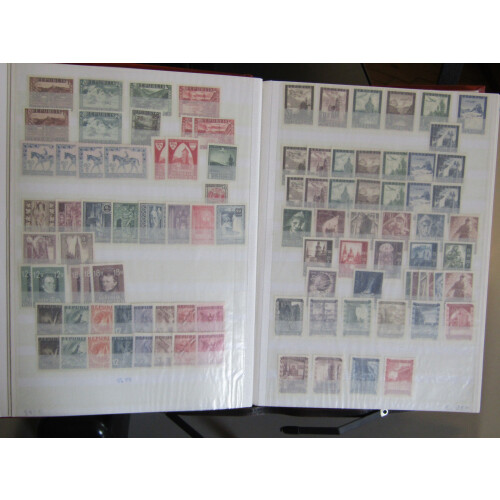 Duplicated collection in a large stockbook of approx. 3500 stamps mint & unmounted mint and a few used, 1920s to 2001, 1925 Air 10s mint, 1948 Costumes 10s grey U/M, 1957 Buildings 20s in blk of 4 U/M + 6 singles, 1973 Views to 50s incl U/M blks of 4 + 6 singles (Cat £240), nice range of 1950s U/M sets and miniature sheets, many attractive thematics, etc. Approx 3500.