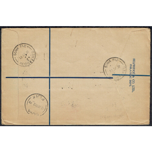 1938 (5 Apr) Multi franked registered FDC to UK (redirected) bearing ½d, 1½d, 5d & 6d tied BUCA BAY cds cancels and regd h/s 1504 alongside. Pretty philatelic cover.
