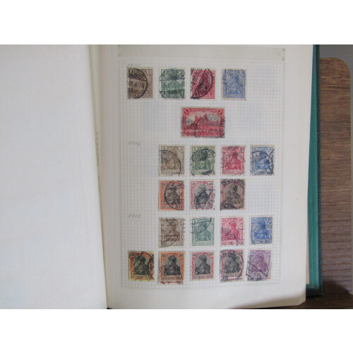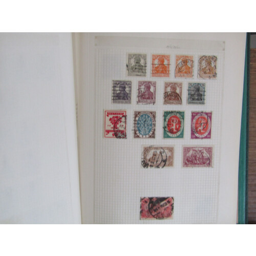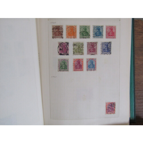Small springback album with a useful used assembly incl Reich mainstream defins and commems, Allied Occupation, 1947 5m blue (Cat £110), French Zones, West Berlin incl 1948 Berlin ovpt in black on 3m brown-lake decent cds cancel, SG B19 (Cat £900), in red on 25pf yellow used (Cat £70), 1949 Goethe 20pf & 30pf (Cat £155), Freedom Bell part set, etc, useful group with high cat value.