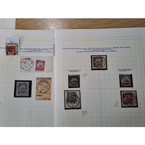 New Guinea: 1900-08 Postmarks range on Yacht defins to 80pf including HERBERTSHOHE, KIETA, STEPHANSORT, RABAUL, FINSCHHAFEN (4, TWO WITH INVERTED DATE SLUG), nice group of 22 items.