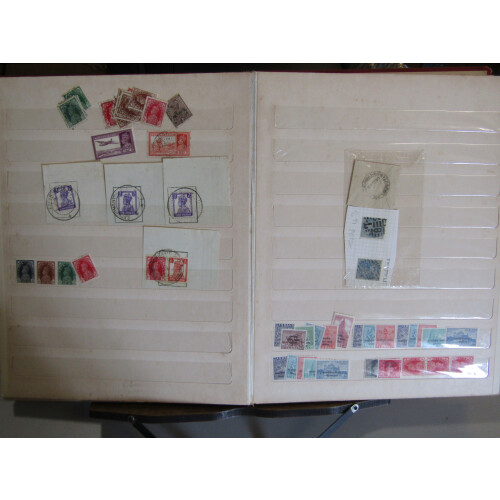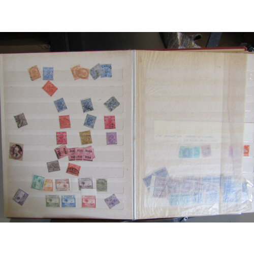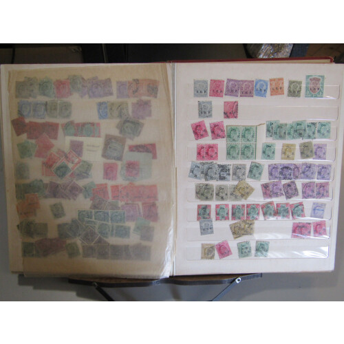 Large stockbook with useful duplicated ranges arranged haphazardly incl 1854 1a red, QV several to 5r used, QV defins with plenty of postmark interest, GV Experimental P.O. postmarks, officials, IEF GV to 1r mint, 1855 to 8a red used, ½a blue strip 3, 1a brown strip of 3, 1r grey mint (faults), few revenues incl GV 10r, Idar state, Patiala state, etc. 100s.