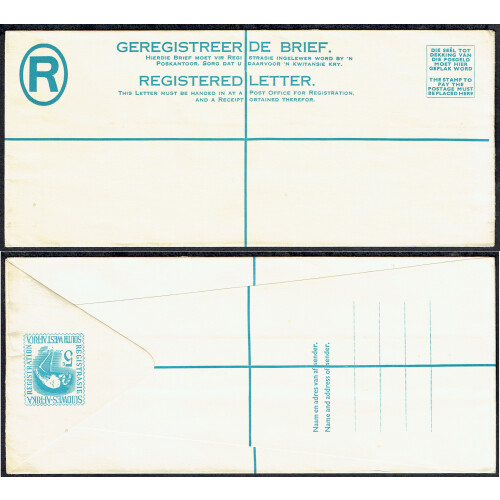 1961 Registered 5c turquoise Flamingo unused long postal stationery envelope, very fine.