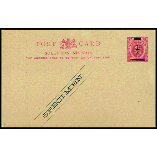 SPECIMEN Overprint on EDVII ½d on 1d red surcharge single card. Sound.