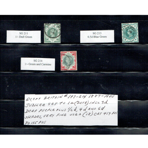 1887 Jubilee Complete set to both 1s cds used only, mainly very fine colours and many crisp examples. (14+ extra shades).