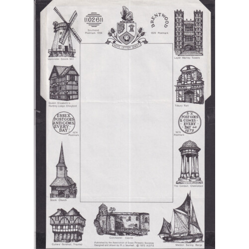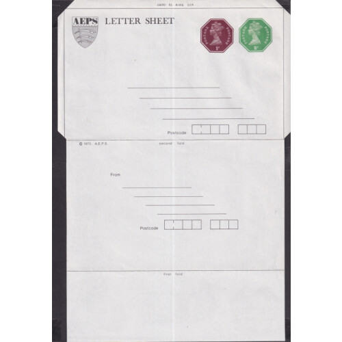 1973 Octagonal impressions on two Association of Essex P.S. printed letter sheets (similar to airletters), unused one combination 1p & 2p, second is ½p & 2p, black illustrations on inside border, both mainly fine, rarely offered.
