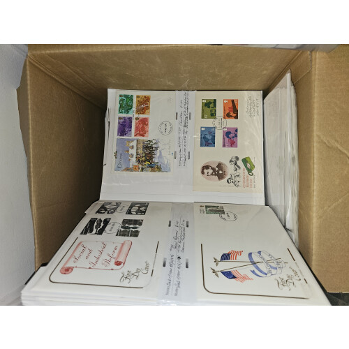 FIRST DAY COVERS - A huge all different collection in FOUR well filled boxes containing various cover albums or loose, runs from 1960s plain, through to Royal Mail covers 1970s to 2000s, some booklet panes, off special event cover etc, huge qty. Heavy lot.