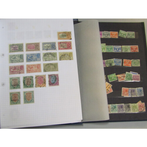 BOX with a worldwide accumulation in two stockbooks and large lever arch file plus some loose including Italy, Spain, large section of India, Italy, Ireland, Japan etc, 100s to sort.
