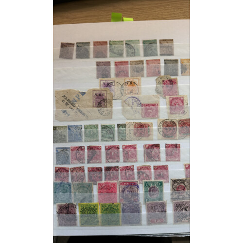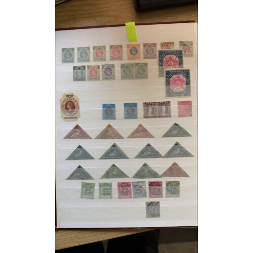 British Commonwealth useful QV to GVI assembly in a stockbook with many better throughout including Cape of Good Hope triangles 1d (3), 4d (5), 1s green (3), OFS, Transvaal, Rhodesia, CSAR perfin, Pakistan, New Guinea airs Bird of Paradise to 1s mint, Trinidad & Tobago GV to 5s mint, Malta GV Postage ovpt to 10s mint, Australia states postmarks (many NSW), Zanzibar mint, Natal, plus dozens more, useful content.