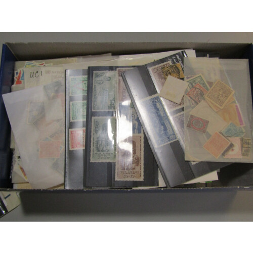 Mixed accumulation in shoebox of world in packets, stockcards and loose. Nice sorter with good variety.