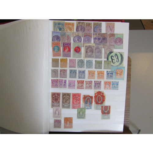 British Commonwealth collection in a stockbook including Australian states with QV to £1, Victoria, Br. Guiana, Cape of Good Hope, Ceylon, Fiji, Hong Kong, Ireland Dog Licence issues, India and states incl nice Court document issues, Natal, N.Z. to £10, Straits Sett., South Africa plus many more, attractive lot in mainly sound condition despite some usual faults. Approx 1400+. Lovely lot.