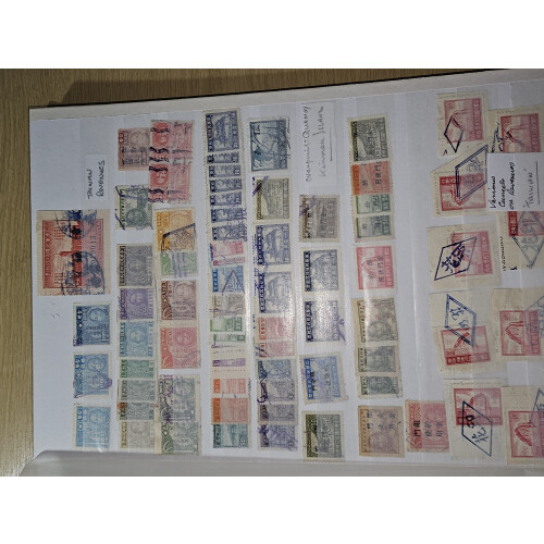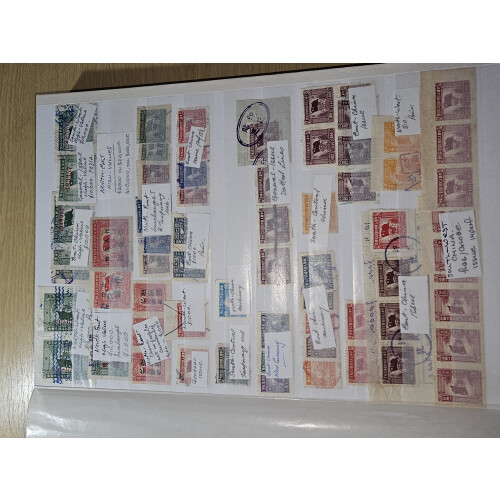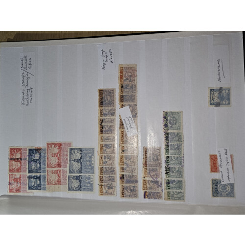 Extensive revenues duplicated collections in a well filled stockbook and postal forms in small piles includes dozens of different types noted Postal Savings, South Central Provisional ovpts, East China, Money Order with Great wall types, Famine Relief, Manchuria, Farming, Bonds, N. China revenue office, then lovely group on receipts and forms. Approx 1400+, scarce opportunity for a dealer or revenues collector.