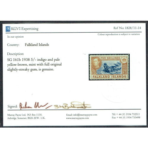 1938 5s Indigo and pale yellow-brown unmounted mint, usual streaky gum, alongwith Murray Pane certificate. SG 161b. Scarce.