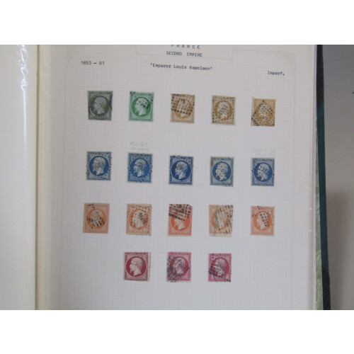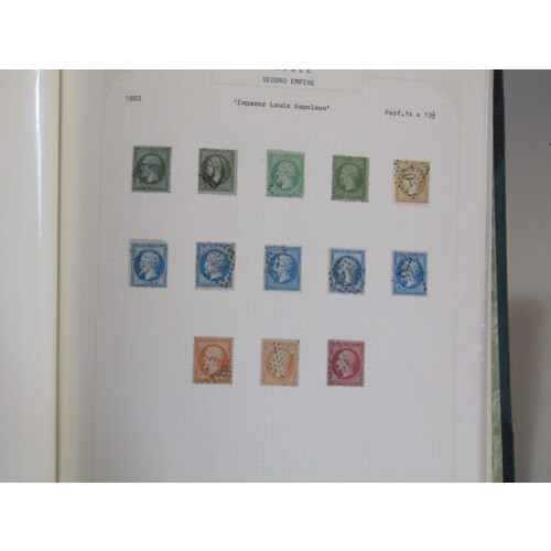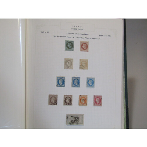 1849-1962 Definitives collection in a Simplex deluxe springback album with most printings represented for 19th century including 1849 15c green (no margins, neatly cat £1200), 40c orange (3 margins), 1853 1c to 80c (mostly f.u. copies), 1862 perf to 80c, 1863 to 80c, 1869 5fr grey-lilac heavy used (faults, cat £1200), 1870 Bordeaux 1c olive on greenish mint, 10c bistre, 30c, 40c & 80c, (faults), 1871-76 four values, 1876 Peace & Commerce incl both greens low values used, 1940-41 surch set 18 mint etc. Approx 650+. Huge cat value.