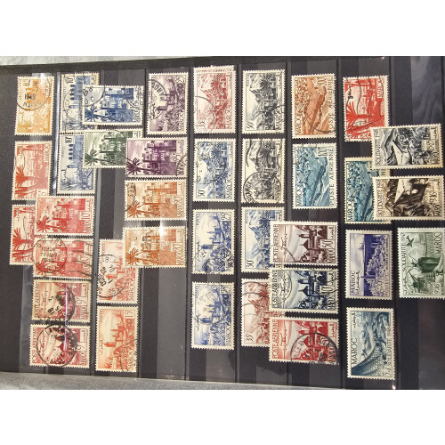 Large stockbook (broken spine) 1930s-1940s with dozens of mint and used for Tunisia, Morocco, Algeria, etc, 100s.
