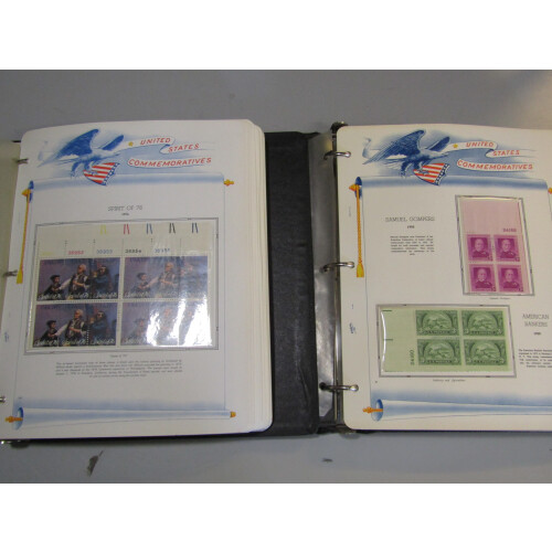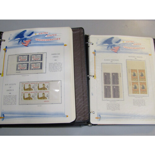 1940-1983 An extensive plate blocks collection of commemorative sets arranged in seven loose-leaf White Ace albums with special printed illustrated pages making a beautiful collection, noted Scott 859-893, 909-921. 100s.