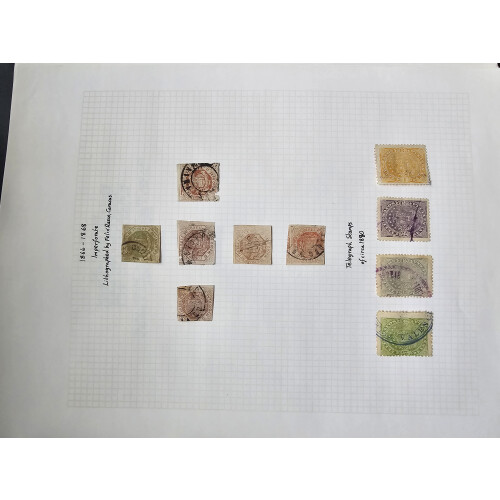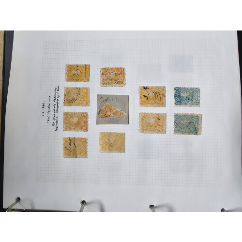 Extensive mainly used mainstream collection in a binder on leaves with 1859-1966, with dozens of defins and commems used, noted 1859 small imperf types, 1862 newspaper, 1863 Eagles, 1866 imperfs, 1871-79 issues imperf, plus bisect on piece 25c orange, 1880 Bolivar issues used, 1888 25c orange rouletted 8 imperf between mint pair, 25c orange imperf mint, 1896 Map set mint plus tete-beche 25c block of 4 mint, 50c rose-red used pairs (each taken as is), misperfs, plenty of defins and commems to 1960s, ideal to fill those gaps!