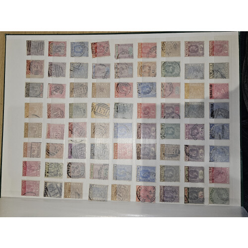 British Commonwealth: Stockbook with over 550 QV-GV used stamps arranged incl India, Jamaica, Malta, BWI, Hong Kong, Sierra Leone, few GB incl 1880 1s orange-brown, 1957 4d rose (3), Gibraltar etc, mainly to lower or odd middle values.