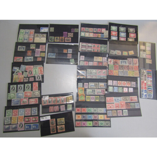 British Commonwealth: Useful mint and used collection on circa 40 stockcards mainly QV-GVI issues for many different countries including Dominica ½ surcharge pair, Bahamas GVI £1 used, FMS, Aden to 1r mint, S. Africa, Seychelles, Labuan, Ceylon, Malta, Gibraltar, Australia to £1, KUT crescent flaw used (faults), Br. Guiana, , plus more, STC £2200+ (not checked, but obvious not counted). Mixed.