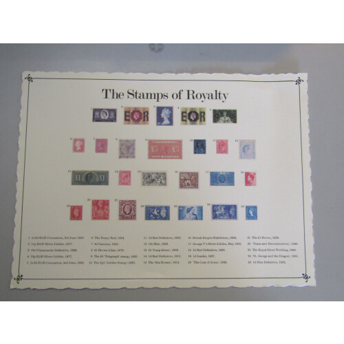 SOLID .925 silver stamp replicas collection of 25 different Great Britain stamps in special wooden cabinet titled The Stamps of Royalty. Stated to be 482grams of solid sterling silver. Huge original cost.