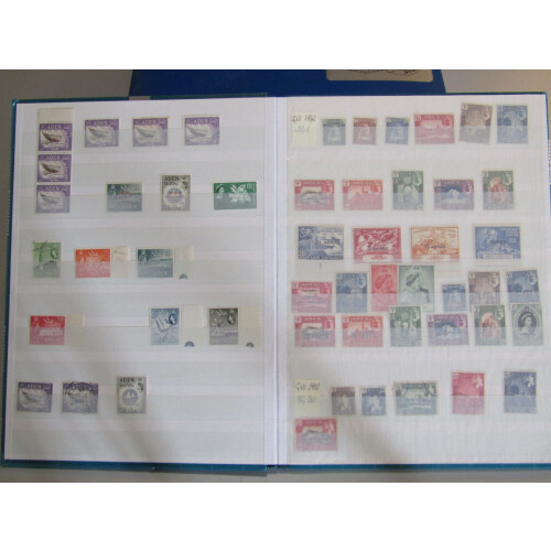 Stockbook 1937 onwards mint and used with better pickings incl 1937 to 1r mint (Cat £127), 1939 set 13 mint (Cat £130), 1948 RSW set U/M (Cat £40), used R10 CDS (Cat £55), 1951 Surcharge set mint (Cat £90), Kathiri state of Seiyun; 1942 set mint (Cat £70), 1951 set (Cat £55), Quaiti State in Hadhramaut 1942 set (Cat £70), then few S. Arabia issues and Aden 1953 airmail cvr etc, (Approx 330).
