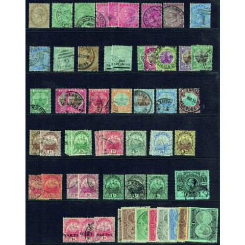 Useful collection from QV onwards with better early to middle periods all fine used laid out on stockpages in date order many items of note including 1883-1904 to 1s, 1906-10 Dry Dock set 9 (Cat £48), 1910-25 set 9 (Cat £50), 1918-22 2/6 (Cat £80), 1920 Tercent 8 vals to 1s (Cat £275), 1921 Tercent set 9 (Cat £250), 1935 SJ set, 1938-53 keyplates including different printings 2s (10), 2/6 (4), 5s (4), 10s (2), £1 (4), etc, superb lot for an Imperial album. Approx 280.