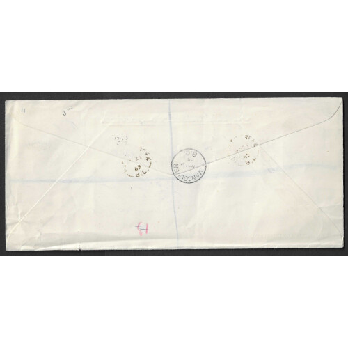 1933 (12 Oct) Long printed OHMS cover (creases) to Canada bearing 1932-6 five different values ½d, 1d, 2d, 2½d, 6d pair tied NIUE CDS cancels with R 74 etiquette, SG 62/5, 67 Cat £159 on cover.