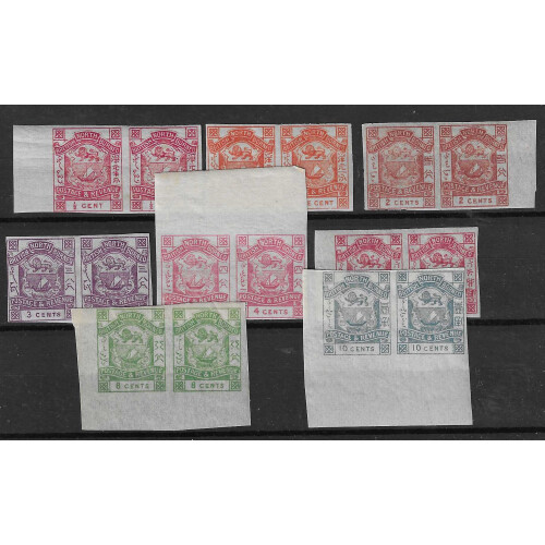 1888-92 IMPERF PAIRS mint / unmounted mint 'set' of eight imperf gummed pairs (some marginal) from ½c to 10c, 3c has thinning, otherwise fine, SG 36c, 37b, 38c, 39b, 40b, 41b, 42a,43c, 44d. Cat £455.