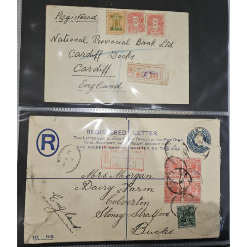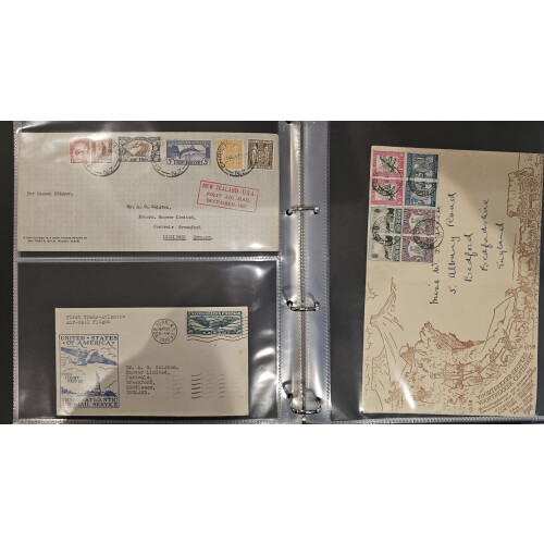 Accumulation in a carton with dozens of WWII censor and a section of aerogrammes with RAF Censors, GB 1958 N. Ireland & Scotland FDI (Cat £70), Falkland Is. 1937 Coronation set on folded cvr, 1980 Birds FDC signed Peter Scott, Australia censor with nice 2s Roo combination, Spain 1947 Stamp Exhib. card used with special pmk and fancy illustrations, Lebanon censored to Ireland, 1954 Posted on Thursday Is., 1940 USA parcel post tag with $5.40 combination, 1944 Ndola to N.I. airletter, Greece 1946 censor to N.I. tied THESSALONIKI EXPEDITION cds cancels from the Greek Civil war, Latvia 1930s censor, some PPCs with saucy themes, Malta 2d regd P/S uprated to UK, Japan Dairen regd cvr, Jamaica 1936 2½d reply coupon, N.Z 1937 1st airmail to USA, 1947 Lighthouse illus souvenir cover with set tied Wellington cds's. USA 1941 cover censor 8054 arriving in London in 1946! Intr lot.