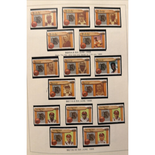 CRICKET: An extensive collection in two well filled binders with dozens of sets, M/S & covers from around the world noted 1968 West Indies Tour sheetlets, 2000 Wisden sheetlets, 100th Test Match at Lords, N.Z. NVI self-adhesives, 2006-7 Australia folder, plus many more.