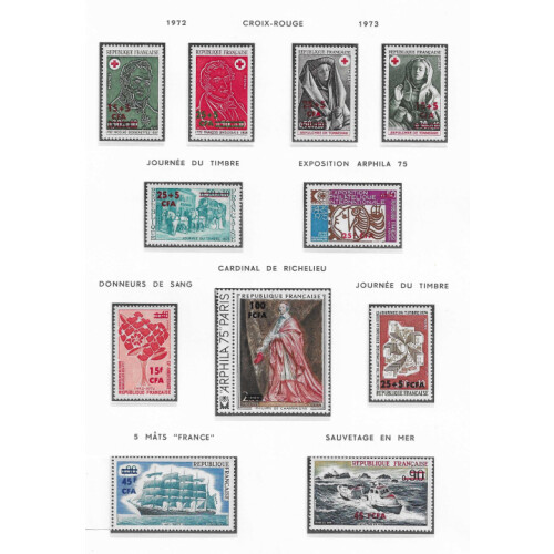 Reunion 1949-1964 on loose leaves in mounts, notable values are 1949-53 100 on 200f mint surcharge SG330, 500f on 1000f mint SG 332, and many more, interesting lot. Approx 115.