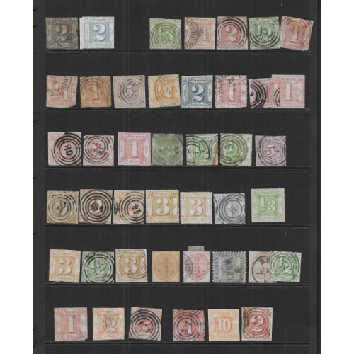Thurn And Taxis - Northern District mixed mint and used lot consisting of (80) presented on a hagner, Noted 1852 ¼ sgr Brown Red (SG 1), 1852 1/3 sgr Flesh used (SG 2), 10 sgr Orange with no margin so nice little space filler (SG 19). And many more , nice lot.