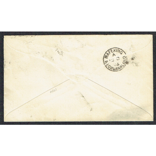 1894 ( 7 Auf) Commercial cover Vryburg to Mafeking bearing GB ovptd ½d vermilion as four singles to pay 2d rate tied 555 duplex cancels and VRYBURG cds alongside, arrival backstamp. Fine and seldom seen. SG 9. Cover multiplier x 80 (Cat £5 each).