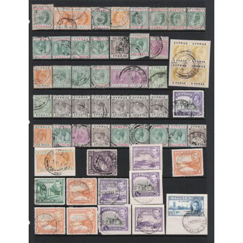 Railway Postmarks: Collection with better range of EDVII-GVI noted RPO Numeral EDVII No. 1, 2, 5, & 6, then CDS types EDVII-GV incl No. 1C, R.P.O., Nicosia Railway Station, GVI RPO ANGASTINA, KALOKHORIO, TRAKHONI, etc. Intr lot. Fine. (c70).