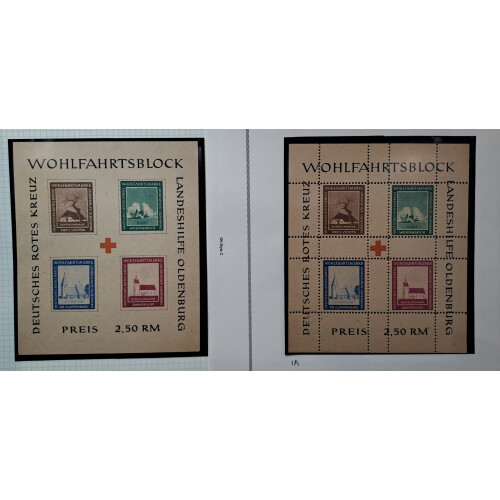 Oldenburg: 1948 State Aid Miniature sheets both types, both imperf and perf very fine U/M, Michel Block I/II A/B. (4 M/S).