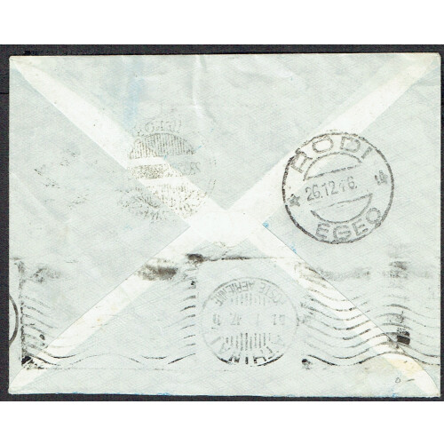 Leros: Dodecanese 1946 (23 Dec) Envelope sent airmail from Rhodes to Athens bearing GB 1d & 5d ovptd M.E.F. neatly tied LEROS / DODECANESE cds cancel, with various backstamps RODI 26.12, and Athens machine arrival mark. Some faults but does not detract.