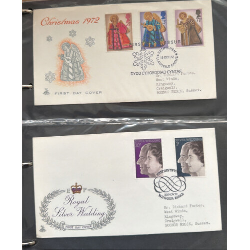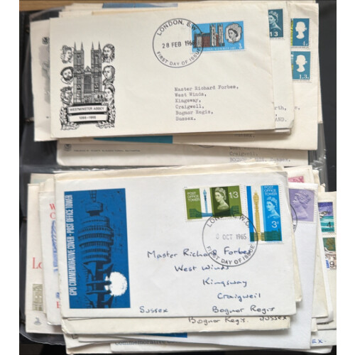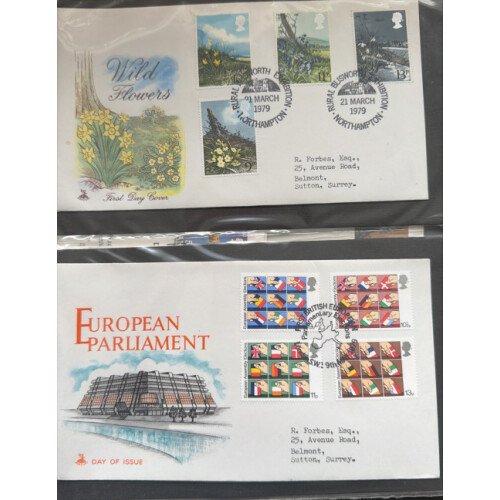 1966-79 First Day covers collection which includes many useful special postmarks noted 1969 St Pauls Cathedral Philatelix, 1970 Charles Dickens - Old Curiosity Shop cancel, 1969 High values set with FDI WINDSOR cds, nice range of Sovereign covers, 1971 Ulster Londonderry cancel, 1972 Village Churches cancel 1970s Mercury Covers, etc 80+.