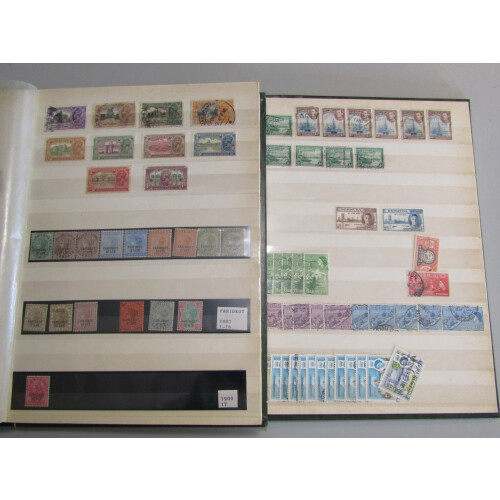 Accumulation of British Commonwealth in two cartons with various mint and used, all periods instockbooks, noted New Zealand and Canada both largely complete in SG loose-leaf printed album from GV-QEII, Australia loose on stockcards, leaves and dealer cards including officials, Pakistan 1947 set to 25r mint, Indian states Faridkot QV set to 1r mint, Aden 1939-48 set mint, plus another box of Australia FDCs in cover albums, Ireland mint on leaves incl 1922 wide date Seahorse 5s in bottom corner marginal single, 1934 re-engraved 2/6 brown mint, other vals to 1s. 100s.