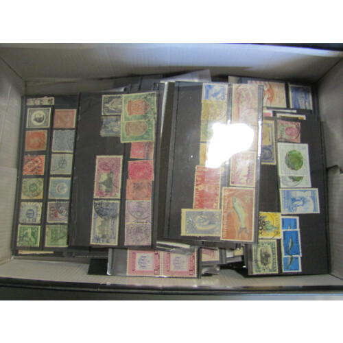 SHOEBOX with a worldwide range of sets and singles on stockcards in bundles, plus many thematic types, lots of different countries, 100s.