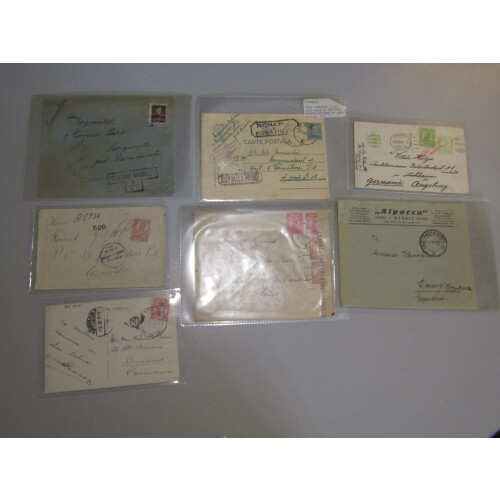Romania: Sixteen earlier to middle periods with many censored incl 1920 Suczawa to Canada with Romania Censor h/s in violet, 1925 censored, 1916 5b green P/S card uprated and tied PELULVIZSGAI h/s in red to Germany, 1941 Censor card, 1942 censor, 1943 2 Cenzurat Fagaras 2 boxed h/s, 1943 28 CENZURAT CRAIOVA 28 boxed h/s, 1943 31 Cenzurat Cralova 31 boxed h/s, 1943 6 CENZURAT SEVERIN 6, 1943 108 CENZURAT IASI 102, 1923 Fischer illus advert env. from Cluj to Prague, 1915 Censored regd env to Switzerland, etc, very intr lot. (16).