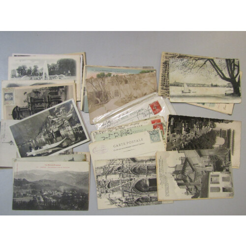 EUROPE - Early to middle periods well filled shoebox of town and village postmarks for France, Switzerland, Netherlands, Gibraltar Paquebot, Belgium, Cape Colony, GB from EDVII onwards with many nice town CDS's, USA, Germany, 1911 Levant, Palestine etc, for approx 570 different PPCs, lots of greetings, Views, topographical etc.