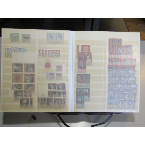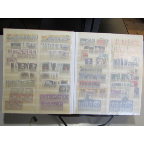 An overfull to the brim, large stockbook with a massive duplicated mint & used (two sections for mint or used) range from 19th century perfs to 1970, includes dozens of defins and commems, back of the book material for airs, Postage dues etc, 100s.