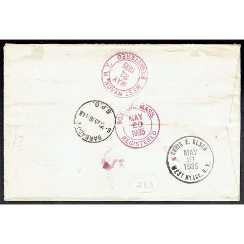 1935 (6 May) Silver Jubilee set of four on registered FDC to New York. Pretty cover. SG 241/244.
