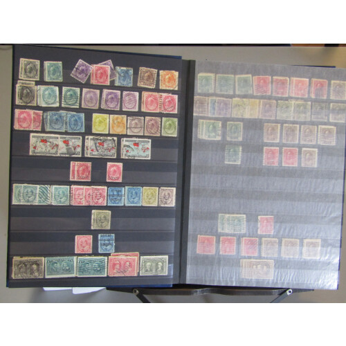 Large stockbook all periods mint and used collection for QV 1c rose perf, 5c red perf (2), Queen Heads large to 15c, small heads to 10c, 1893 20c & 50c, 1897 Jubilee 15c part o.g., 1908 Quebec 1c mint, 7c vfu (Cat £75), then plenty of defins and commems both mint & used, back of the book for GVI / QEII issues to 1980s. Approx 1900+.