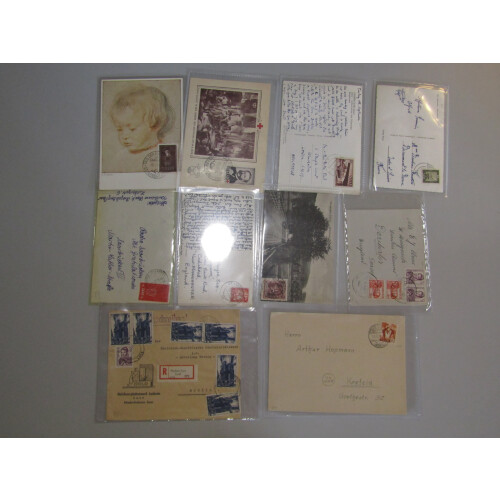 Covers group with useful rates including French Occupation 1947 4f on 16pf pair with 2f on 12pf combn to UK, 1949 Holo advertising env regd to Merzig from Wadern, 1925 Postcard with 45c Madonna on obv. 1951 Horticultural Show special show PPC (16 Jun, scarce), 1953 Red Cross special PPC, 1955 Stamp Day x 3 values on FDI, 1953 Stamp Day on special PPC, 1922 defins on covers (2), etc, interesting group (22).